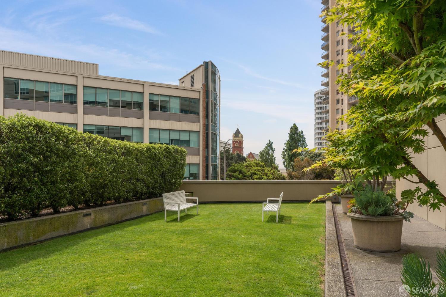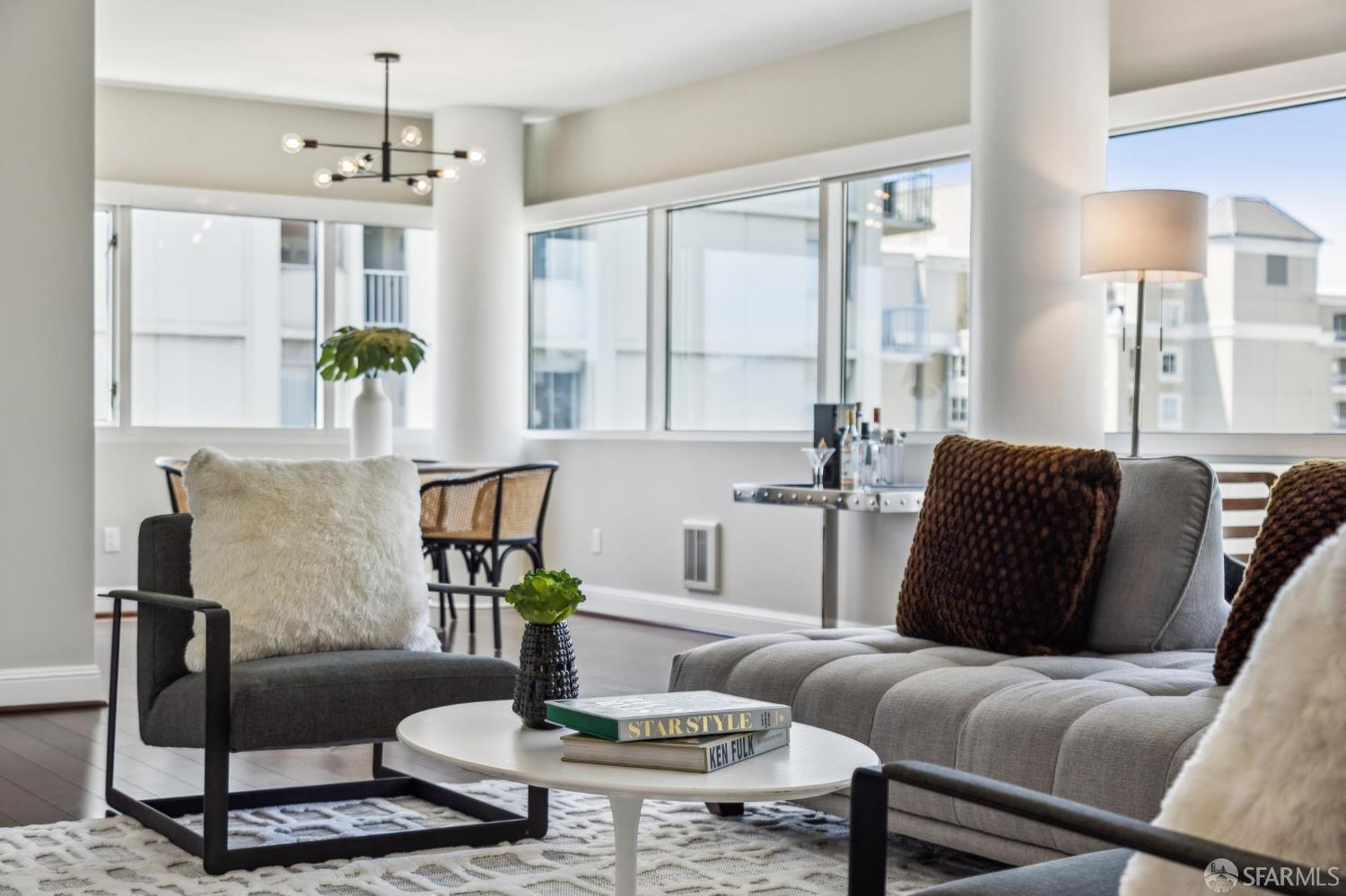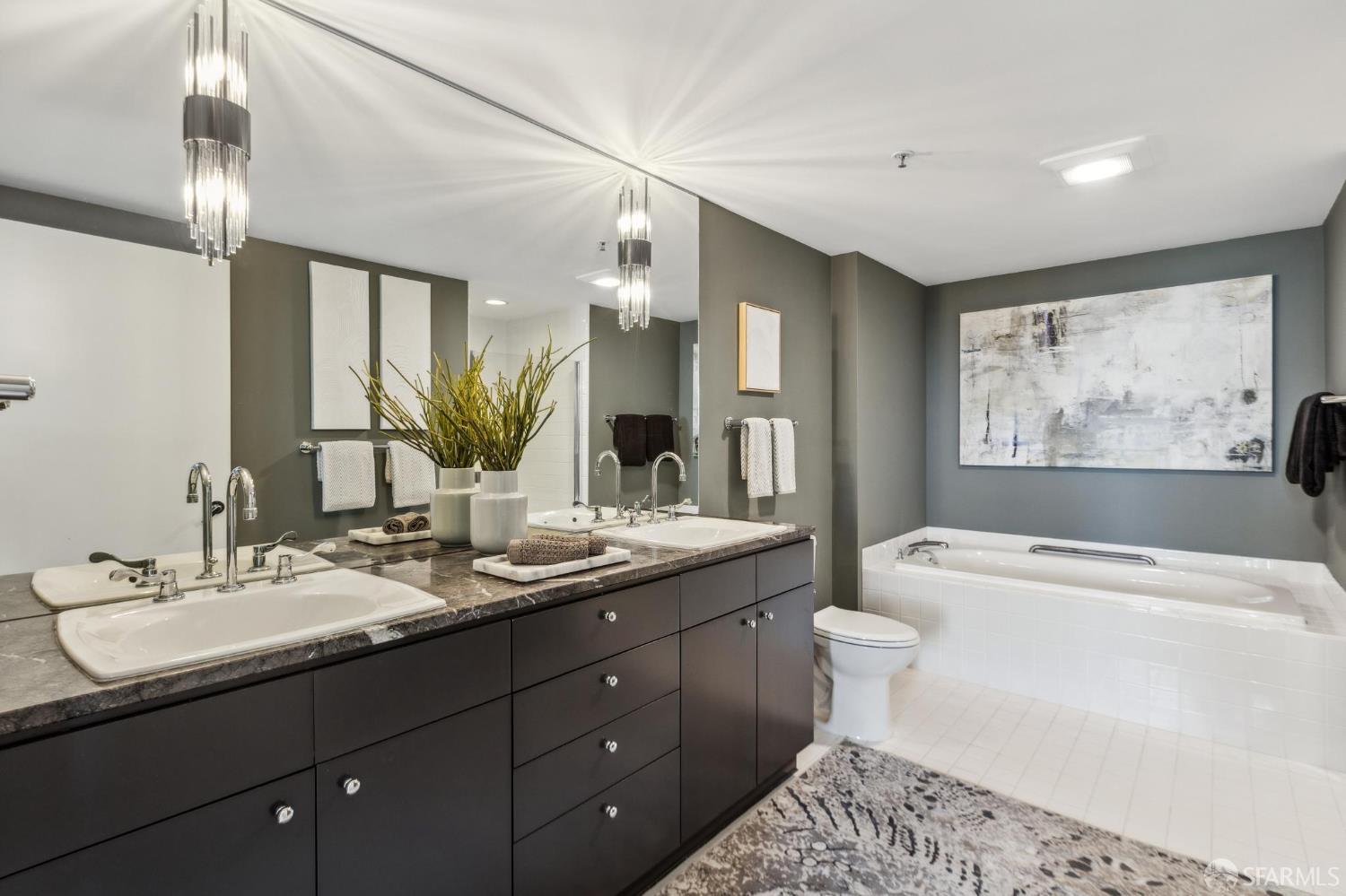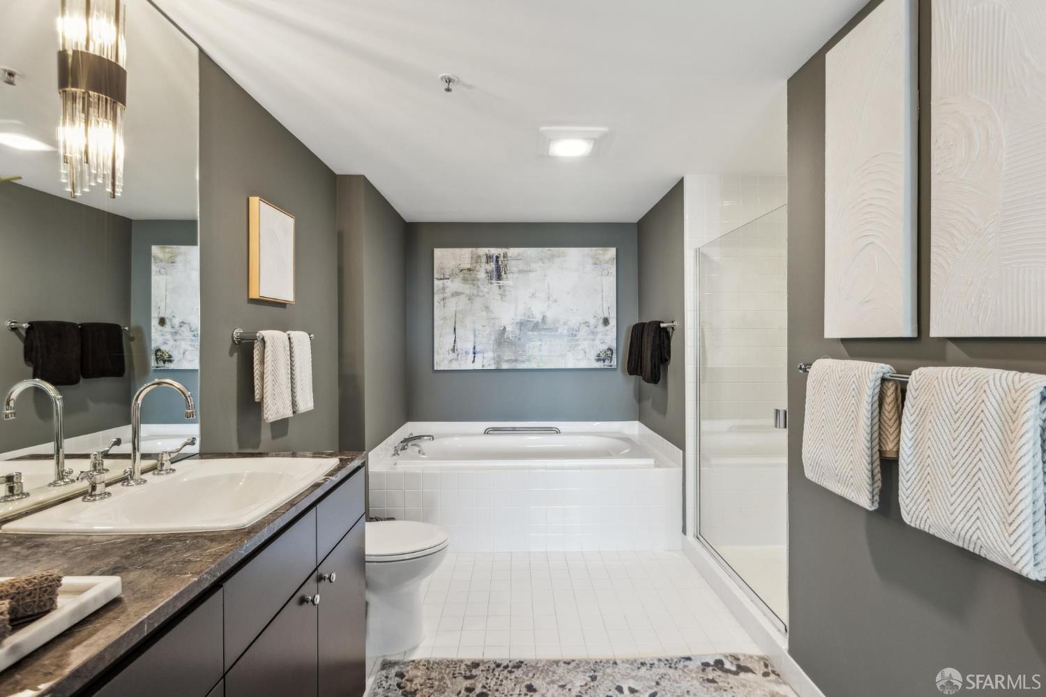 Seller to PAY 2 YEARS of HOA Dues nearly $50,000 back in Your Pocket! Experience elevated San Francisco living in this stunning high-floor corner condo, ideally located at the nexus of Downtown, Hayes Valley, Pac Heights, Fillmore, and Japantown. This expansive two-bedroom, two-bath home features a desirable split-wing layout, offering privacy for each bedroom suite. Oversized windows flood the space with natural light and frame sweeping city views day and night. The home's modern allure is accentuated by warm hardwood flooring, an updated kitchen with sleek finishes, and spa-inspired bathrooms designed for relaxation and indulgence. Entertain effortlessly in the open living and dining spaces, or retreat to your private sanctuary in one of the two spacious bedrooms. Additional comforts include in-unit laundry, one-car garage parking, and secure, additional storage. The amenity-rich building offers 24/7 concierge, security, protected package delivery, a full gym with locker rooms, guest parking, EV charging, and a peaceful rear garden oasis. 1388 Gough is prized for its solid construction and top-tier sound proofing offering both comfort and quiet. This is your chance to live where luxury, privacy, and convenience converge!