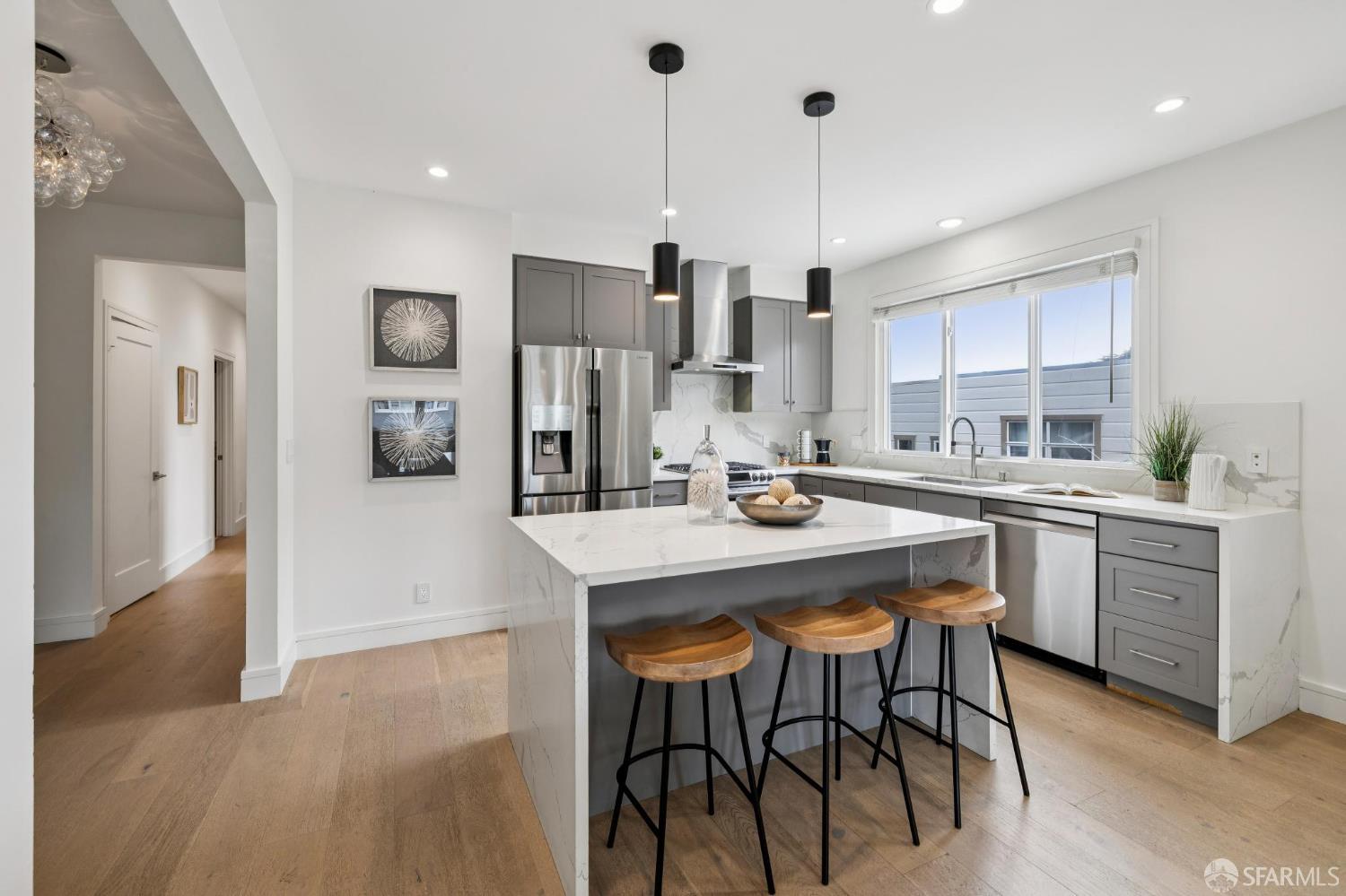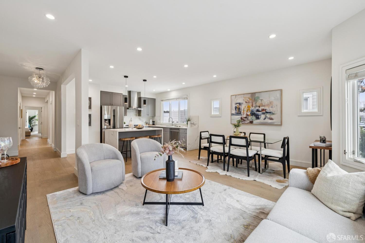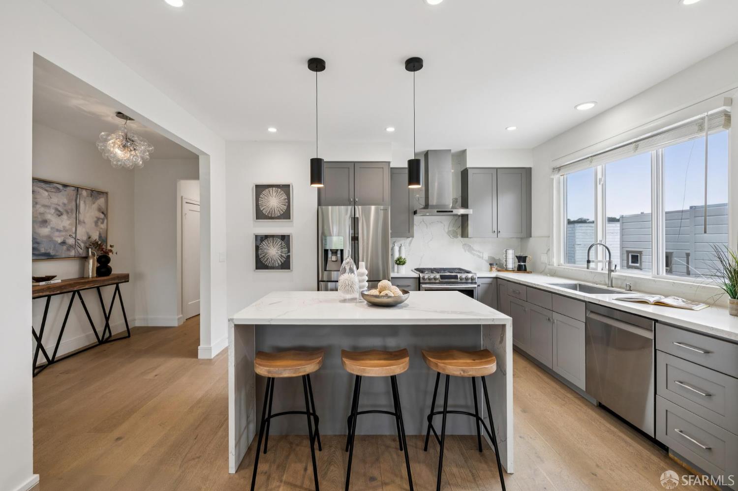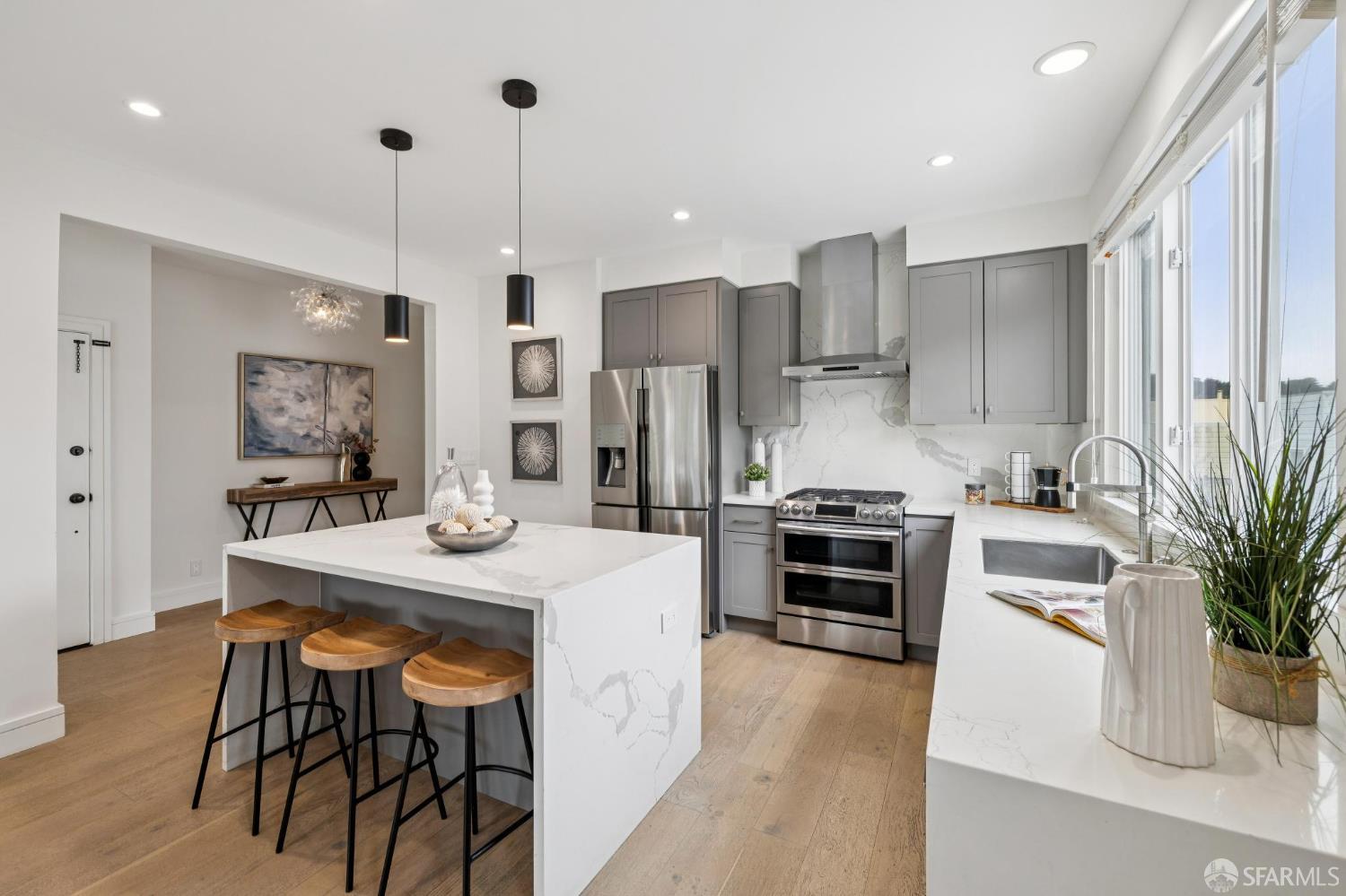 Experience the best of San Francisco living in this beautifully renovated, two-level 4BD/3BA home, part of an exclusive two-unit condominium building. Flooded with natural light and offering the feel of a single-family home, this residence features exclusive use of a landscaped private yarda true urban oasis. The main level offers a spacious layout with three bedrooms, two bathrooms, and a sun-drenched sunroom/home office. The lower level, with its separate entrance, adds incredible flexibility with a fourth bedroom, a full bath, and two expansive rooms that open directly to the serene yard,perfect for multi-generational living, a guest suite, or a creative workspace. Completely renovated with high-end finishes and thoughtful upgrades throughout, no detail has been overlooked. Located just three blocks from Golden Gate Park, near top-rated schools, and moments from the Richmond's best restaurants, cafes, and shops.